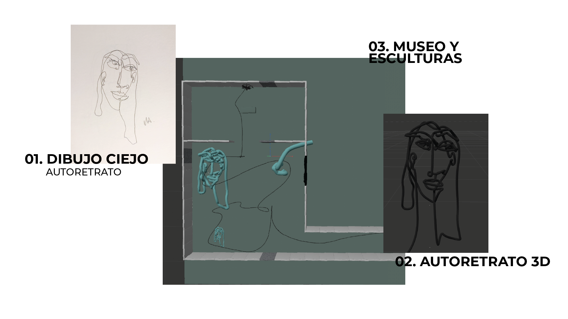 Inspired by blind drawing—a single-line drawing technique created without looking at the paper—combined with my passion for museum architecture, light, shadow, and abstract shapes.